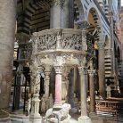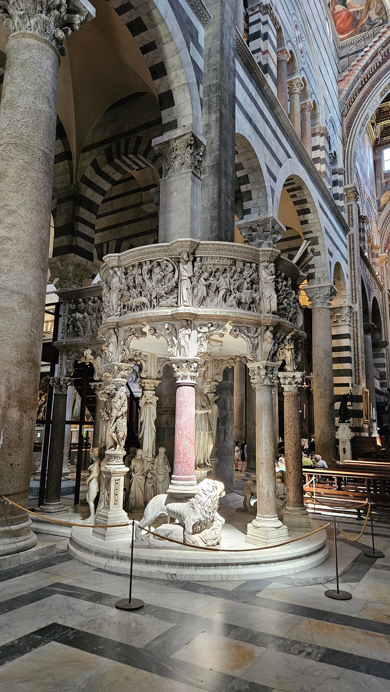 Continue inside the Cathedral, a masterpiece of Pisan Romanesque architecture. Admire its marble colonnades, rich mosaics, and centuries-old artworks that bear witness to Pisa’s spiritual and artistic heritage. Your ticket also includes entrance to the Baptistery, the largest of its kind in Italy, a circular marvel blending Romanesque and Gothic styles, famed for its remarkable acoustics. Inside, don’t miss Nicola Pisano’s intricately carved pulpit and the majestic 13th-century baptismal font.