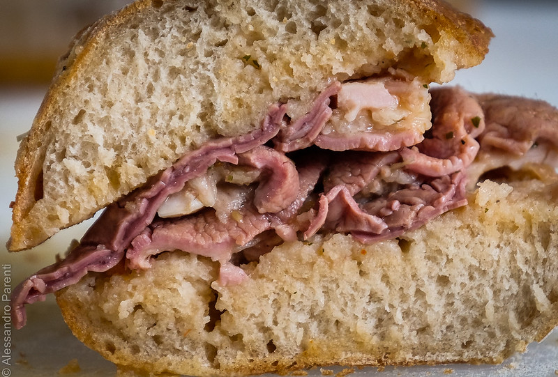 Diners can get their panino with salsa verde, which is a green sauce with parsley. They can also try a slightly spicier version with salsa picante, which is a sauce with chili oil.